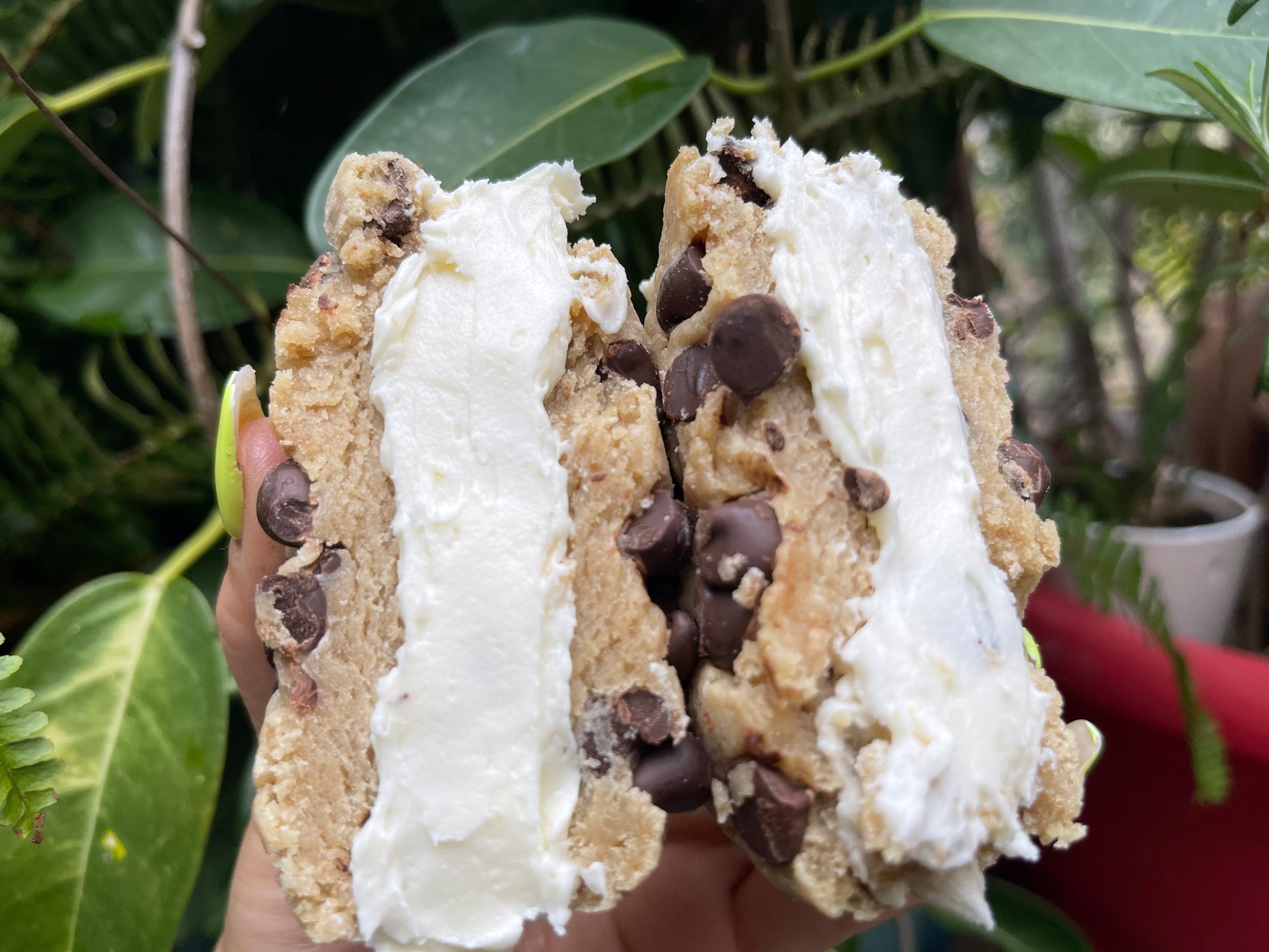 Gluten-free and Vegan sandwich creme cookies. Flavors: chocolate chip w/ vanilla butter cream, double chocolate chip w/ vanilla butter cream, double chocolate with chocolate butter cream, birthday cookie w/ vanilla butter cream, red velvet w/ vanilla buttercream